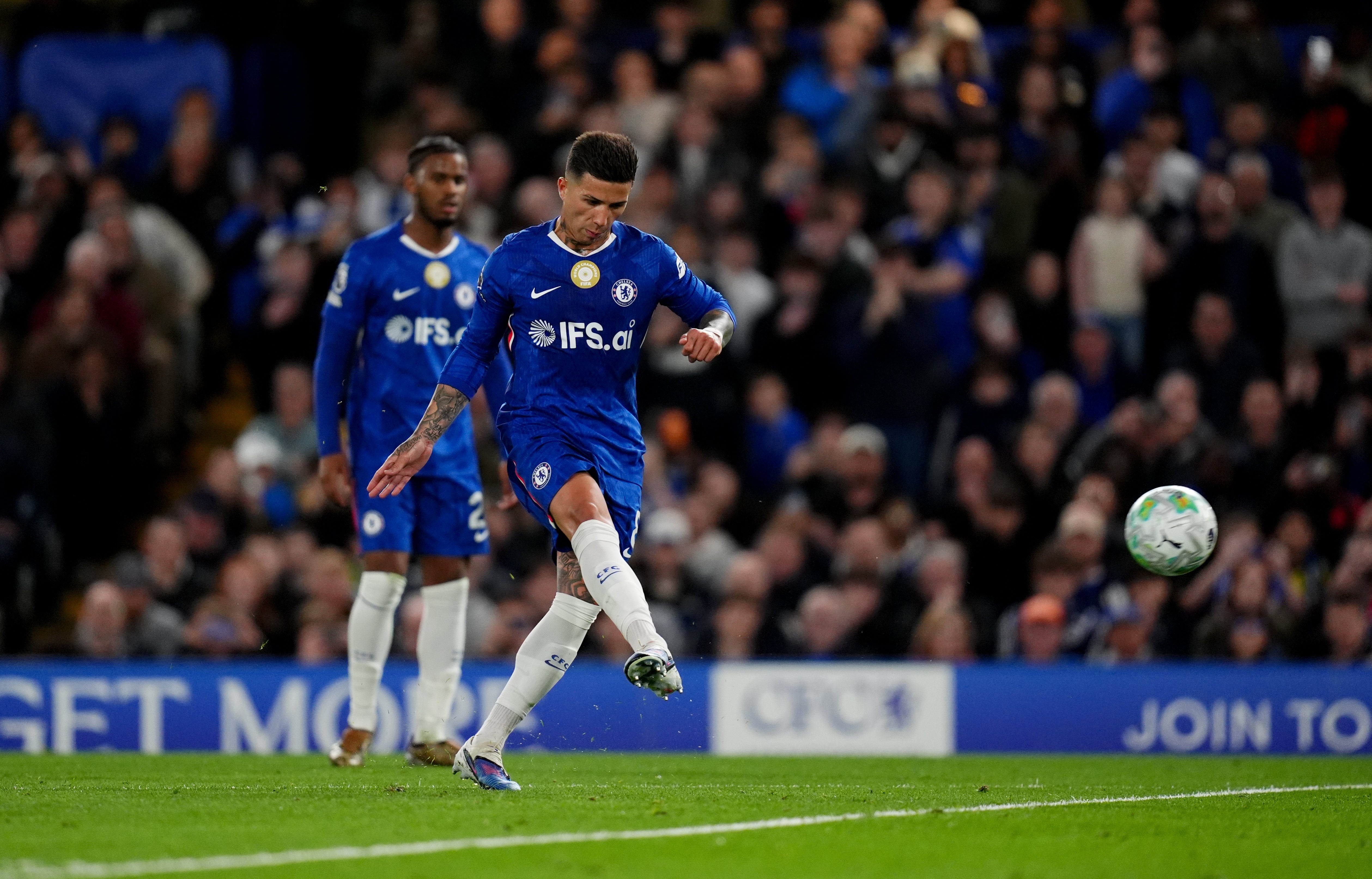 Enzo Fernandez then half-tricked, half-wrestled his way through two visiting defenders to set up a curling effort which flew inches wide – Chelsea’s best opening of the first half.