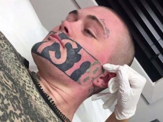 The 19-year-old was serving a two-year jail term for aggravated robbery when his brother, who was his cell mate, gave him the tattoo which was supposed to be smaller and go along his jawline.