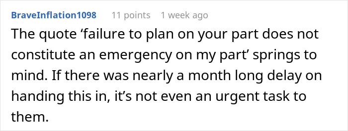 Why did this whole fiasco take place in the first place? Because the manager wanted the author to work on their days off. At the beginning of their post, the author recounts how another colleague missed a deadline, and the manager asked the OP to work extra hours. What’s more, they even expected the author to work when they were actually on vacation!