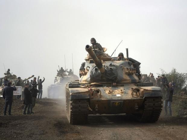 The Turkish campaign only became possible when Russia agreed not to oppose it and, above all, allowed Turkish jets to operate in Syrian airspace. This is under Russian control west of the Euphrates. The long-contemplated Turkish assault was finally provoked by the US announcement last week that its forces would be staying in Syrian Kurdish territory for the foreseeable future. This de facto guarantee of the Kurdish statelet, directed against the Syrian government and Iran by the US, radically changed the strategic balance in Syria. The US had assured the Turks since the end of 2014 that its military cooperation with the YPG was purely tactical, directed against Isis and would end when Isis was defeated.