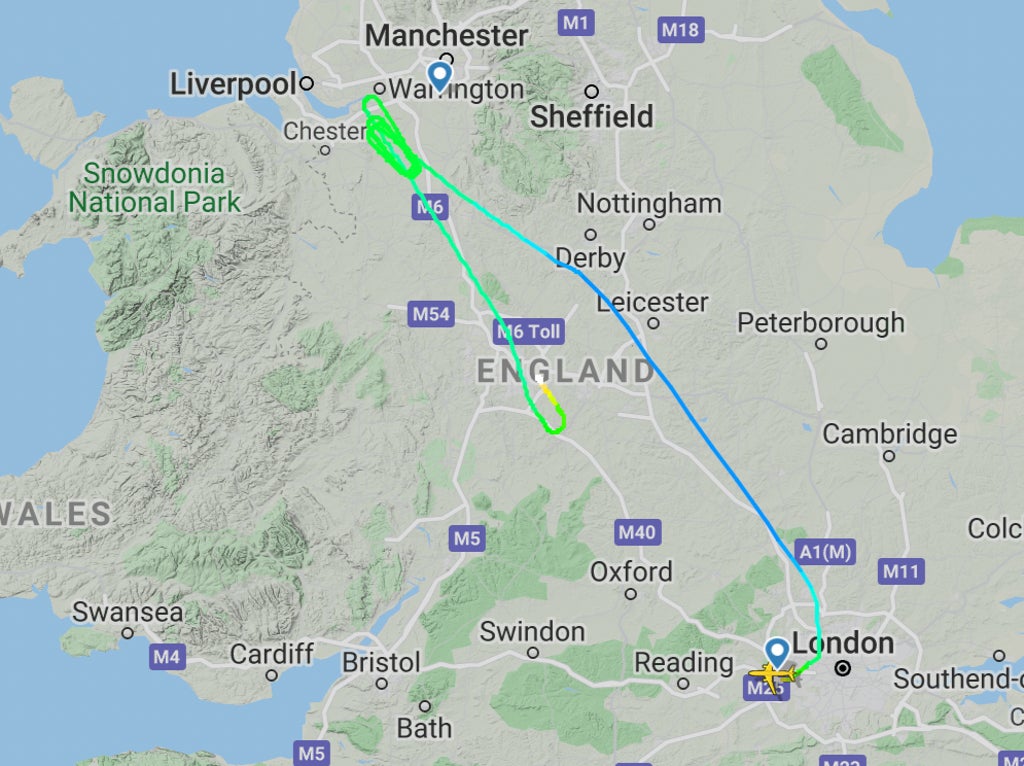 The final British Airways flight of the day from Heathrow circled over Cheshire before the pilots decided to fly halfway back to London and land at Birmingham.