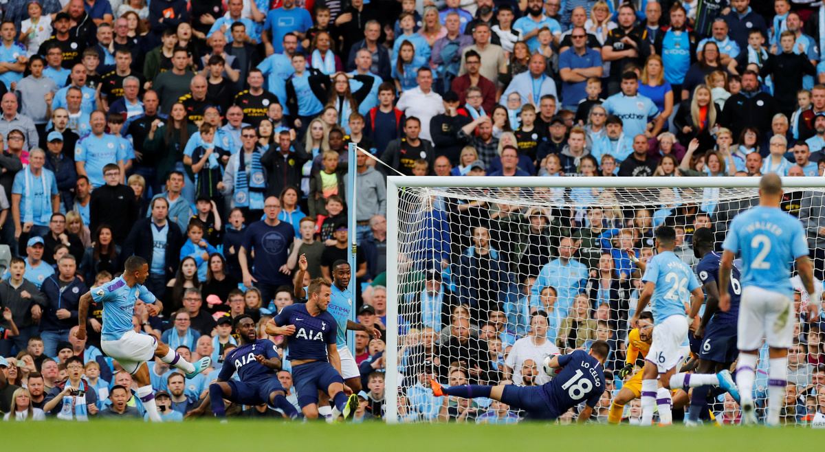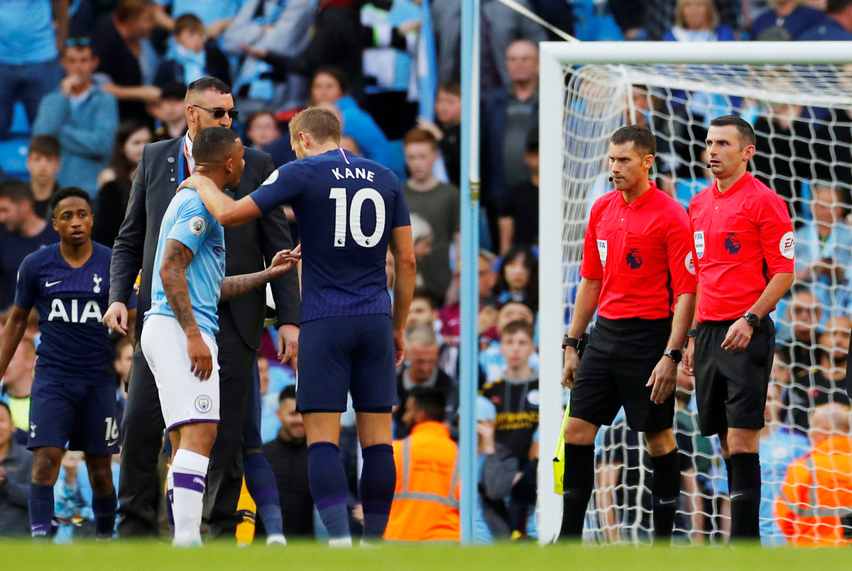 MANCHESTER, England (Reuters) - Manchester City had a late goal from Gabriel Jesus ruled out by VAR review as they drew 2-2 at home to Tottenham Hotspur on Saturday -- their first league home game without victory in nearly eight months.