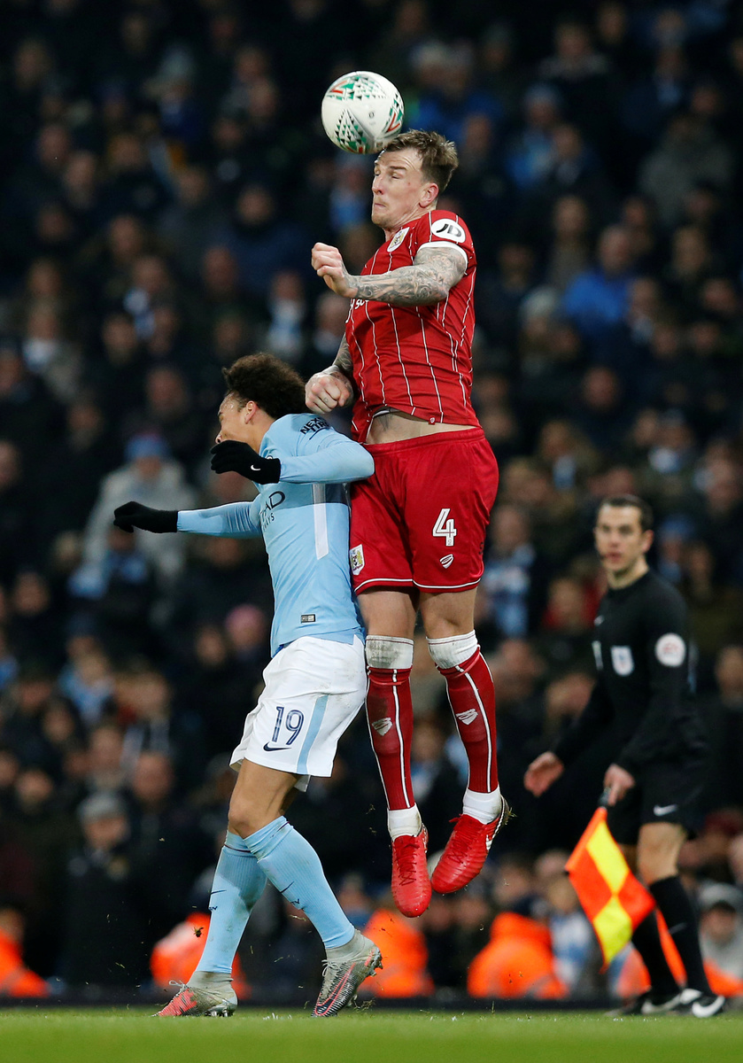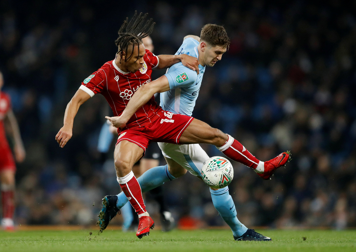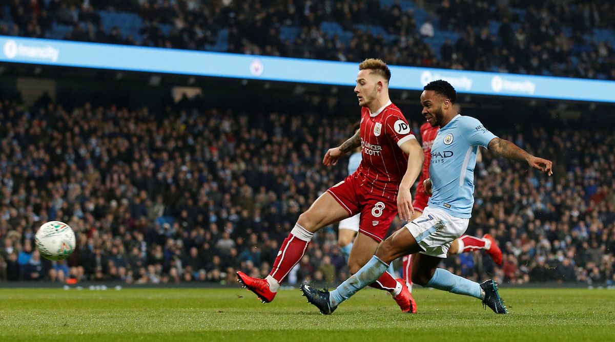 MANCHESTER, England (Reuters) - Manchester City forward Sergio Aguero's last-gasp header secured a 2-1 victory over Bristol City in their League Cup semi-final first leg on Tuesday after the second-tier side had frustrated the Premier League leaders.