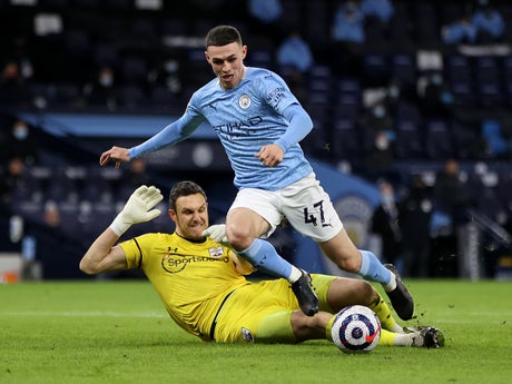 The Southampton goalkeeper attempted to win the ball from Foden but made contact with the City forward, who fell to the ground but then quickly got back to feet.
