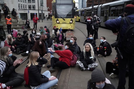 The incident took place on Saturday at the Manchester city centre where protesters were obstructing tramlines to voice their opposition against the government’s new Police, Crime, Sentencing and Courts Bill.