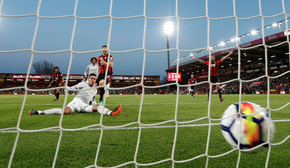 Soccer Football - Premier League - AFC Bournemouth vs Manchester United - Vitality Stadium, Bournemouth, Britain - April 18, 2018 Manchester United's Chris Smalling scores their first goal Action Images via Reuters/John Sibley