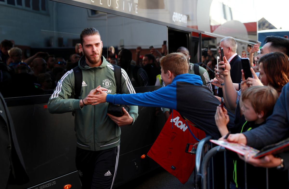 Soccer Football - Premier League - AFC Bournemouth vs Manchester United - Vitality Stadium, Bournemouth, Britain - April 18, 2018 Manchester United's David De Gea arrives at the stadium before the match REUTERS/Ian Walton Soccer Football - Premier League - AFC Bournemouth vs Manchester United - Vitality Stadium, Bournemouth, Britain - April 18, 2018 Manchester United's Marcos Rojo arrives at the stadium before the match REUTERS/Ian Walton Soccer Football - Premier League - AFC Bournemouth vs Manchester United - Vitality Stadium, Bournemouth, Britain - April 18, 2018 Manchester United manager Jose Mourinho speaks with Bournemouth manager Eddie Howe before the match Action Images via Reuters/John Sibley Soccer Football - Premier League - AFC Bournemouth vs Manchester United - Vitality Stadium, Bournemouth, Britain - April 18, 2018 Manchester United manager Jose Mourinho before the match REUTERS/Ian Walton EDITORIAL USE ONLY. No use with unauthorized audio, video, data, fixture lists, club/league logos or "live" services. Online in-match use limited to 75 images, no video emulation. No use in betting, games or single club/league/player publications. Please contact your account representative for further details.Soccer Football -DFB Cup - Schalke 04 vs Eintracht Frankfurt - Veltins-Arena, Gelsenkirchen, Germany - April 18, 2018 Schalke 04 fans display a banner before the match REUTERS/Wolfgang Rattay