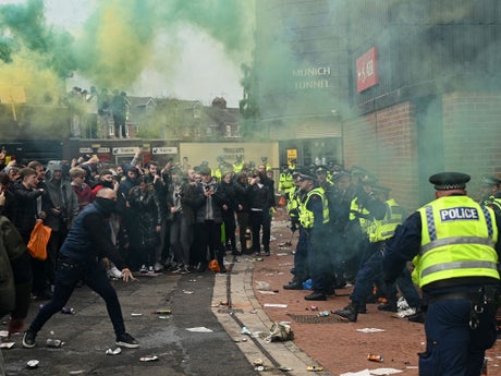 GMP said a number of officers were injured in the protest which saw about 1,000 Manchester United supporters rally outside Old Trafford, and about 200 outisde the Lowry Hotel in the city centre, ahead of the team’s match against Liverpool on Sunday 2 May.