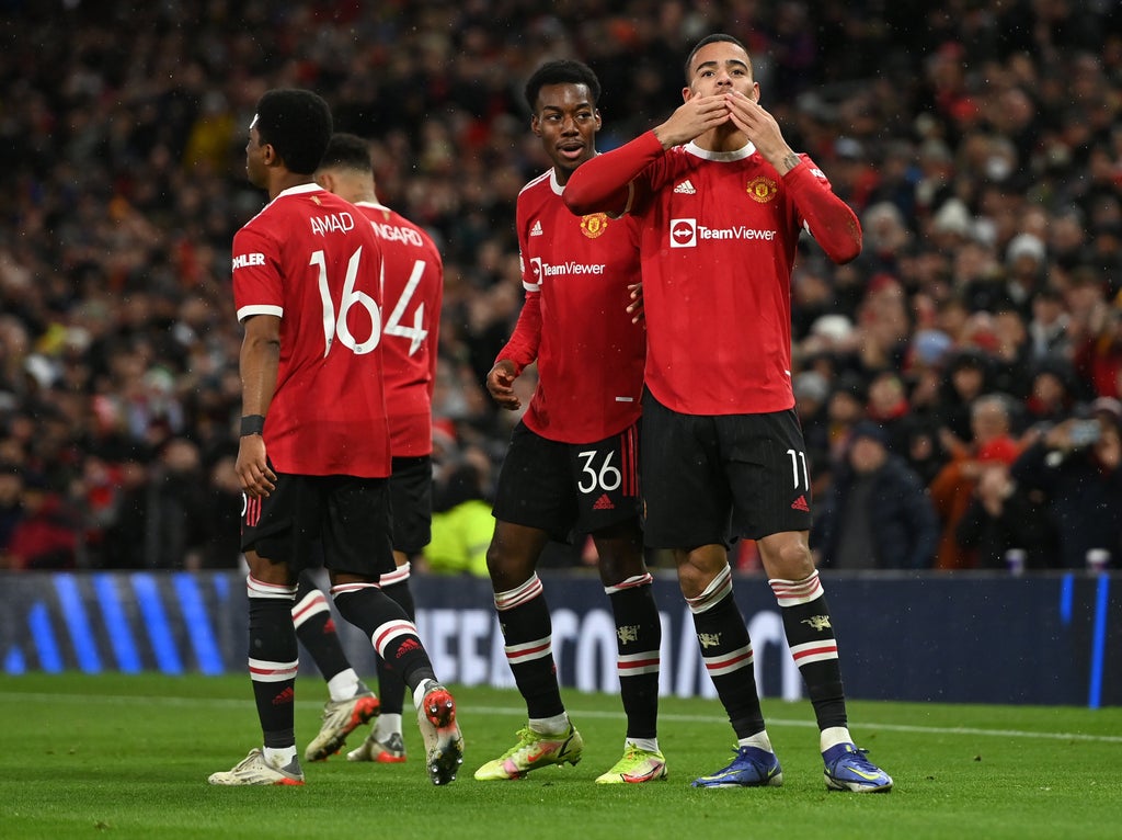United did not get the job done quickly and efficiently enough, despite going ahead through a 20-year-old who was one of the more senior names in this experimental line-up. Greenwood already has a fine back catalogue of finishes but this was one of his best. Luke Shaw’s cross from the left was dropping slightly behind him, yet a swift readjustment of his feet and his acrobatic finish turned a half-chance to a goal.