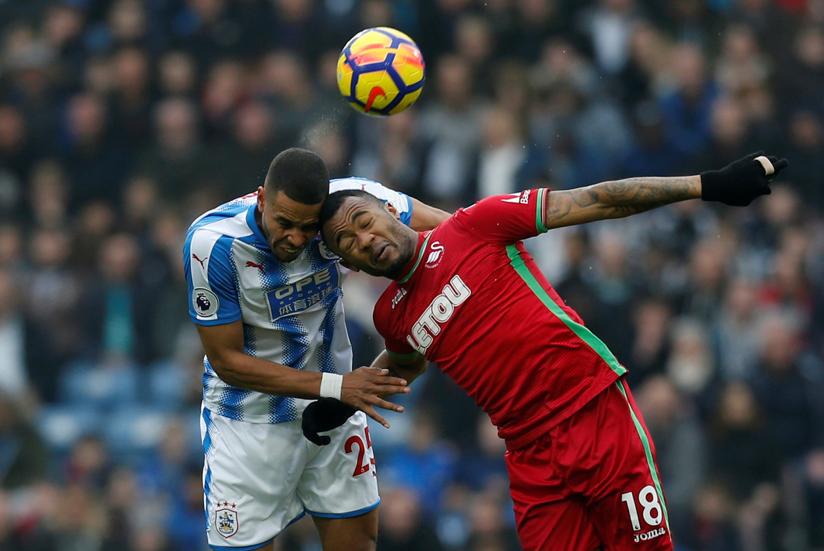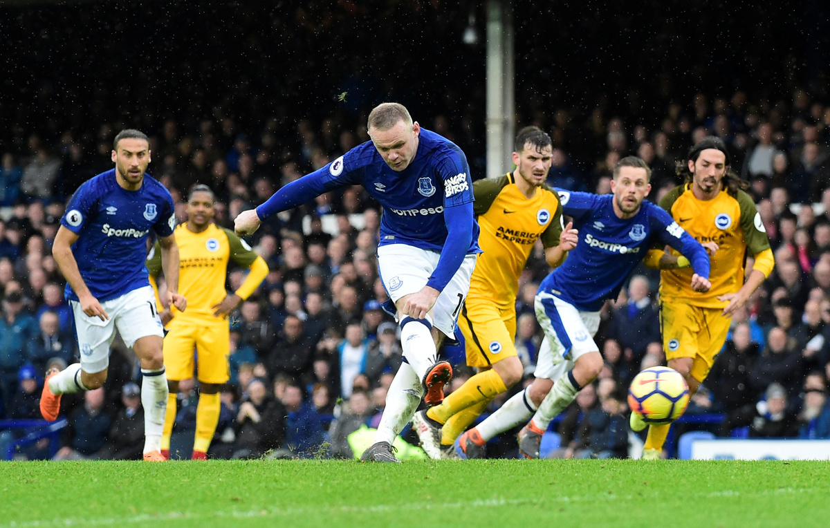 Swansea City, who had Jordan Ayew sent off in the 11th minute, held Huddersfield Town to a 0-0 draw at the John Smith's Stadium while Wayne Rooney's penalty miss mattered little as Everton beat Brighton and Hove Albion 2-0 at Goodison Park.