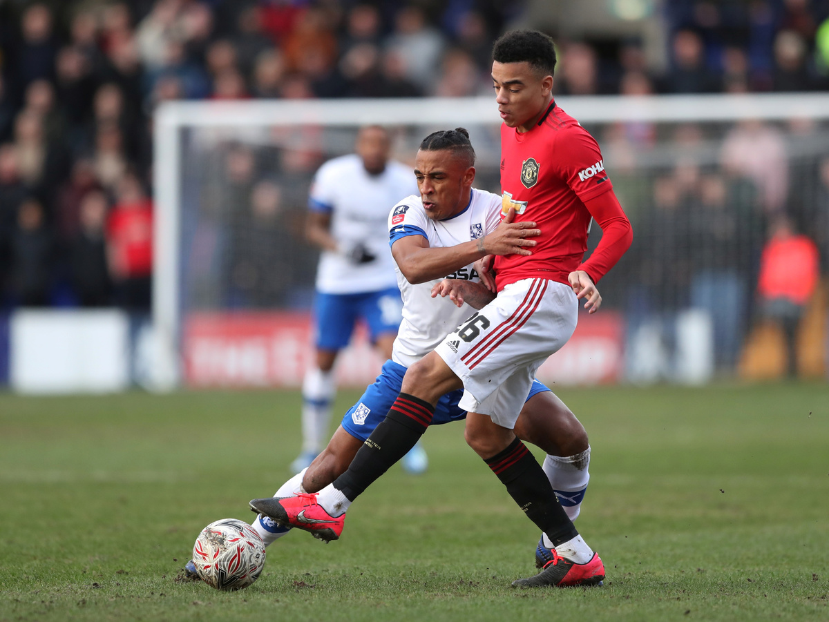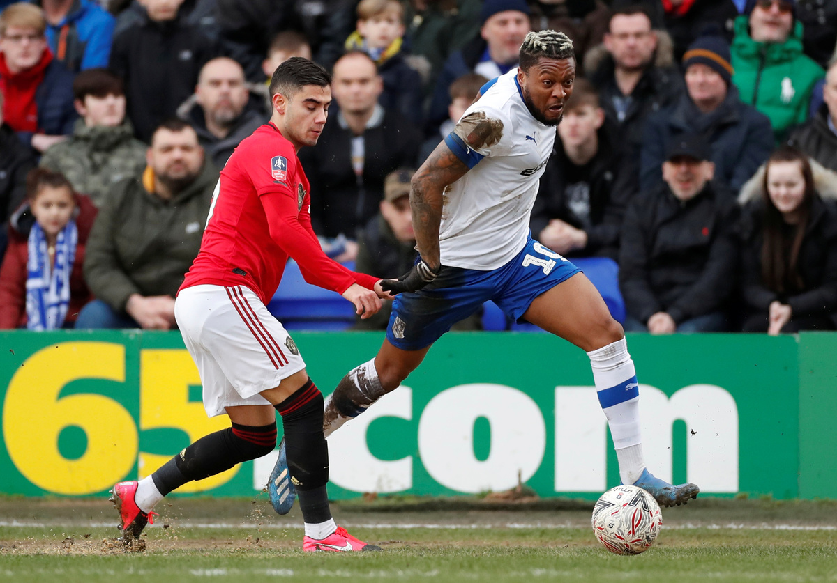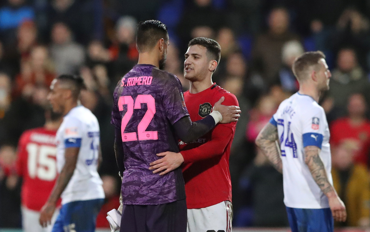 Soccer Football - FA Cup Fourth Round - Tranmere Rovers v Manchester United - Prenton Park, Birkenhead, Britain - January 26, 2020 Tranmere Rovers' Emmanuel Monthe in action with Manchester United's Mason Greenwood REUTERS/Scott HeppellSoccer Football - FA Cup Fourth Round - Tranmere Rovers v Manchester United - Prenton Park, Birkenhead, Britain - January 26, 2020 Manchester United's Andreas Pereira in action with Tranmere Rovers' Corey Blackett-Taylor Action Images via Reuters/Andrew BoyersSoccer Football - FA Cup Fourth Round - Tranmere Rovers v Manchester United - Prenton Park, Birkenhead, Britain - January 26, 2020 Manchester United's Harry Maguire celebrates scoring their first goal Action Images via Reuters/Andrew BoyersSoccer Football - FA Cup Fourth Round - Tranmere Rovers v Manchester United - Prenton Park, Birkenhead, Britain - January 26, 2020 Manchester United's Harry Maguire celebrates scoring their first goal with teammates Action Images via Reuters/Andrew BoyersSoccer Football - FA Cup Fourth Round - Tranmere Rovers v Manchester United - Prenton Park, Birkenhead, Britain - January 26, 2020 Manchester United's Jesse Lingard scores their third goal Action Images via Reuters/Andrew BoyersSoccer Football - FA Cup Fourth Round - Tranmere Rovers v Manchester United - Prenton Park, Birkenhead, Britain - January 26, 2020 Tranmere Rovers' Morgan Ferrier in action with Manchester United's Andreas Pereira Action Images via Reuters/Andrew BoyersSoccer Football - FA Cup Fourth Round - Tranmere Rovers v Manchester United - Prenton Park, Birkenhead, Britain - January 26, 2020 General view inside the stadium during the match Action Images via Reuters/Andrew BoyersSoccer Football - FA Cup Fourth Round - Tranmere Rovers v Manchester United - Prenton Park, Birkenhead, Britain - January 26, 2020 Manchester United's Sergio Romero celebrates with Diogo Dalot after the match REUTERS/Scott Heppell
