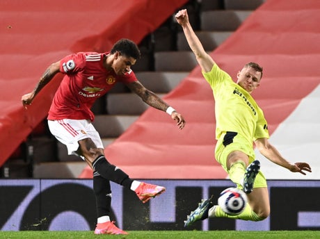 Second half goals from Daniel James and Bruno Fernandes wrapped up victory at an empty Old Trafford, where Allan Saint-Maximin cancelled out Rashford’s impressive 18th goal of the season.