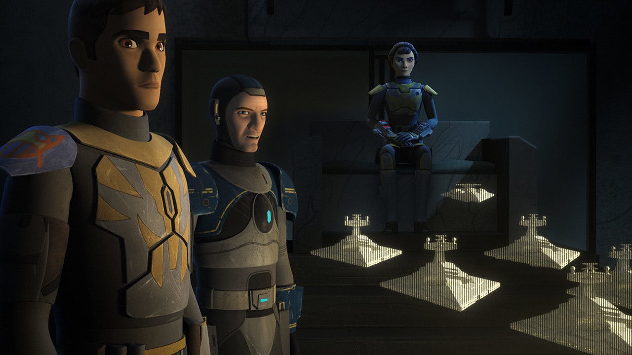 Regardless of whether Fenn Rau’s inclusion means more Rebels cameos or more detail on Mandalore, it definitely would signal that Sackhoff reprising her role isn’t just a fluke — and that any voice actor could reprise their role in live-action. Might Sam Witwer appear as Darth Maul? Maybe even Tim Curry could cameo as Palpatine himself.