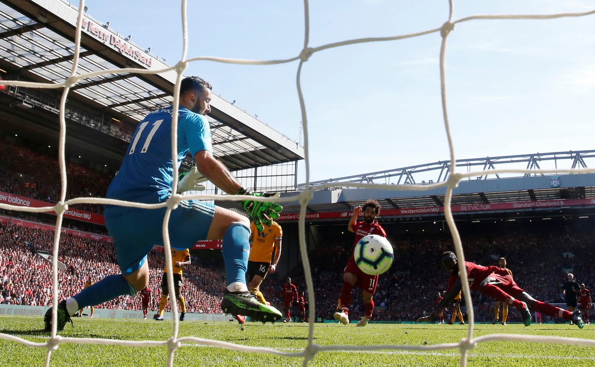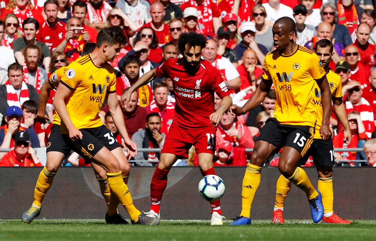 Wolves keeper Rui Patricio was alert to keep out a 20-metre blast from left-back Andy Robertson and Mohamed Salah volleyed over the bar from the edge of the area.