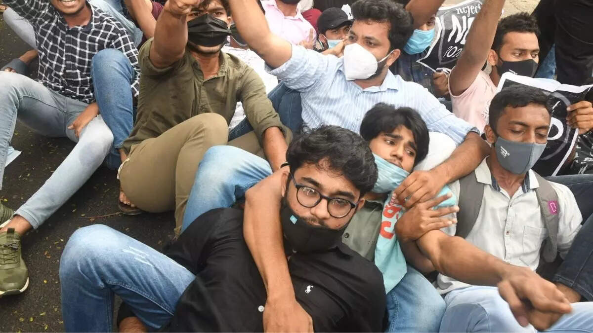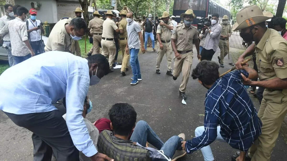 MANGALURU: The members of the Campus Front of India (CFI) staged a protest against the National Education Policy during its launch by the state higher education minister C N Ashwath Narayan at Mangalore University on Monday.