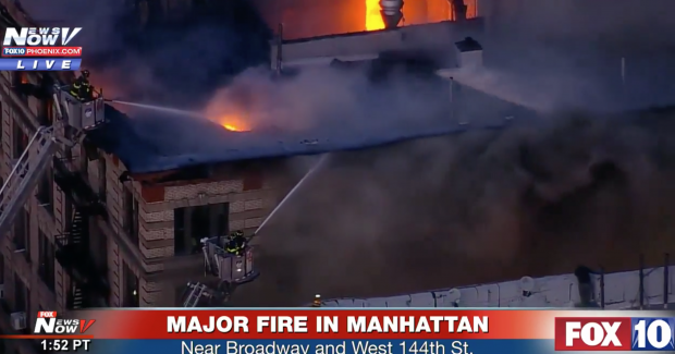 Syndee Winters, an actress who lists Hamilton: The Musical under her credits, posted videos from the scene of the fire showing the entire roof engulfed in flames as firefighters continued to battle the blaze, according to the website AMNew York.