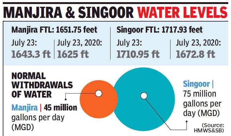 According to current water levels, there was only an eight feet gap at Manjira and a seven feet gap at Singoor, to their respective FTLs.
