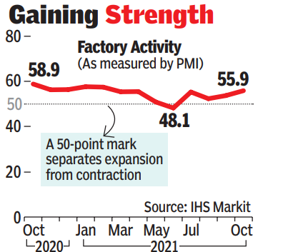 NEW DELHI: Activity in the country’s manufacturing sector rose at its fastest pace in eight months in October on the back of new orders as demand improved and the economic recovery gathered strength, a survey showed on Monday.