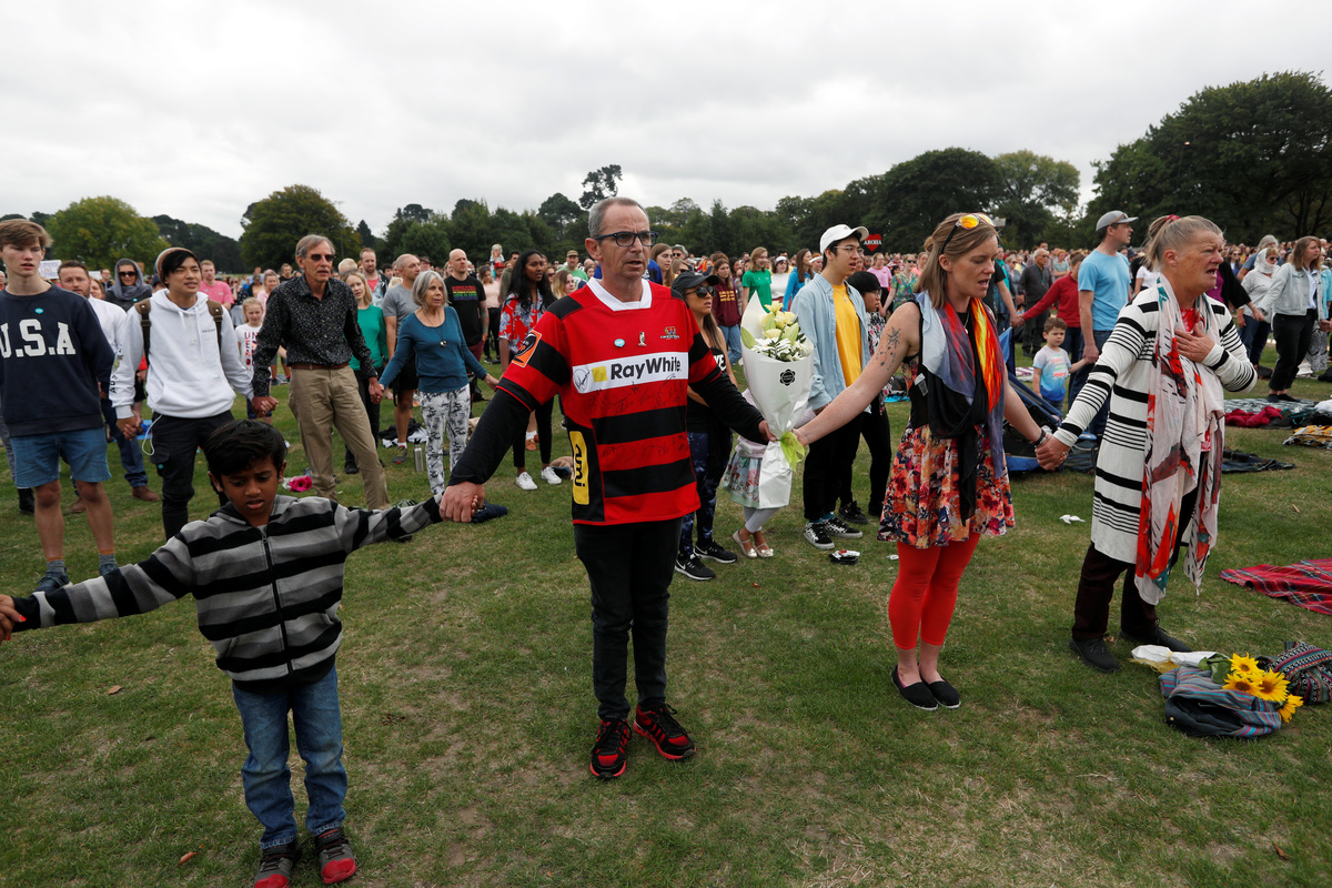 On Friday, the Muslim call to prayer was broadcast nationwide on television and radio and about 20,000 people attended a prayer service in the park opposite Al Noor mosque in a show of solidarity.