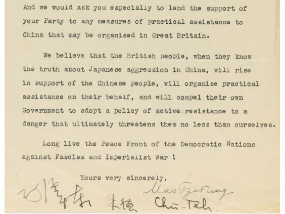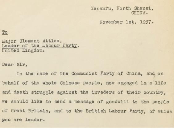 Mao sent the letter dated 1 November 1937 from Yan’an, a remote part of north-western China. It was where the Communist party had set up headquarters following a full-scale invasion from Japan, and the letter called for urgent assistance from Britain in the war against Japanese imperialism.