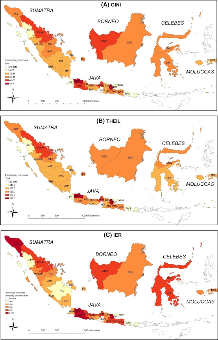 The analysis found that Batavia (now Jakarta), Surabaya, Priangan (now West Java), Semarang, East Sumatra (now part of North Sumatra) and West Kalimantan had the highest levels of inequality.