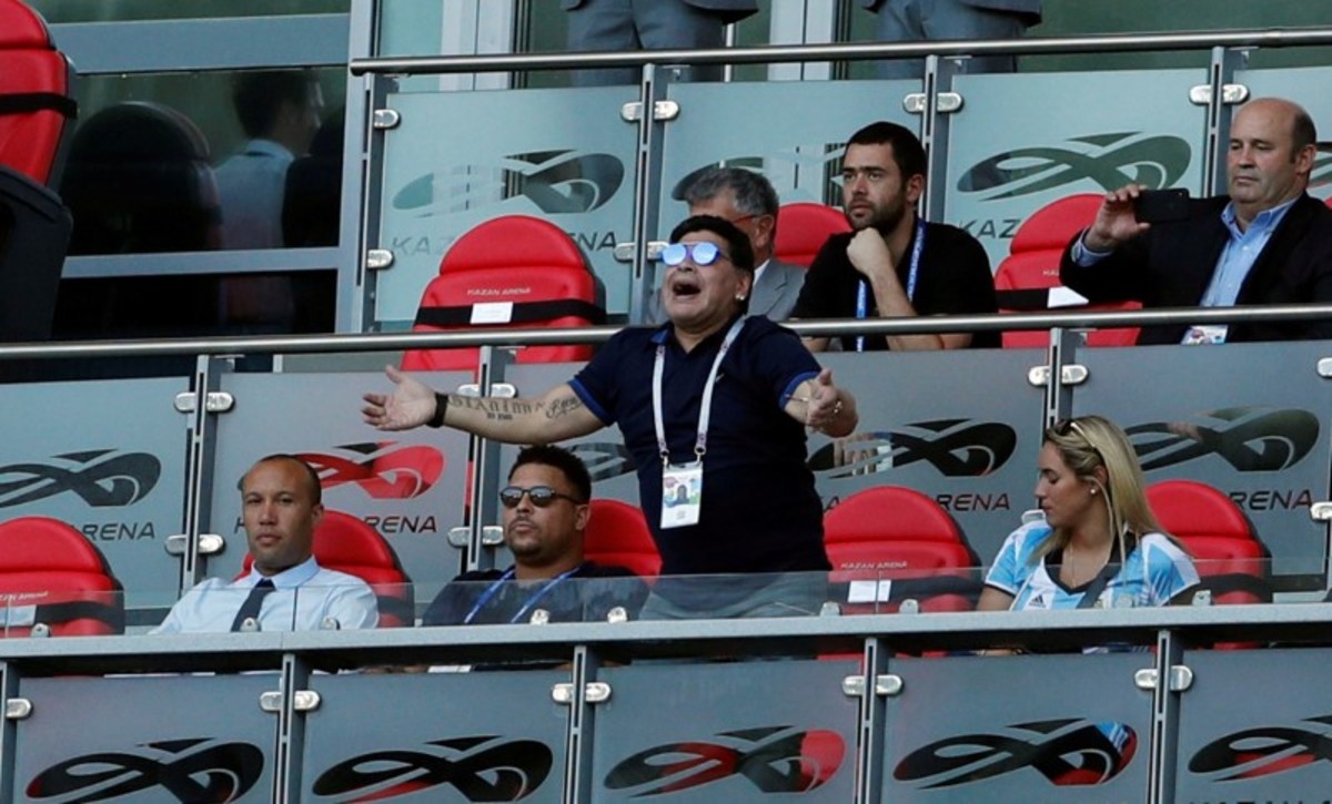 He is still one of the most controversial faces in football, and he hit the headlines in Russia for his colourful appearances at Argentina games.