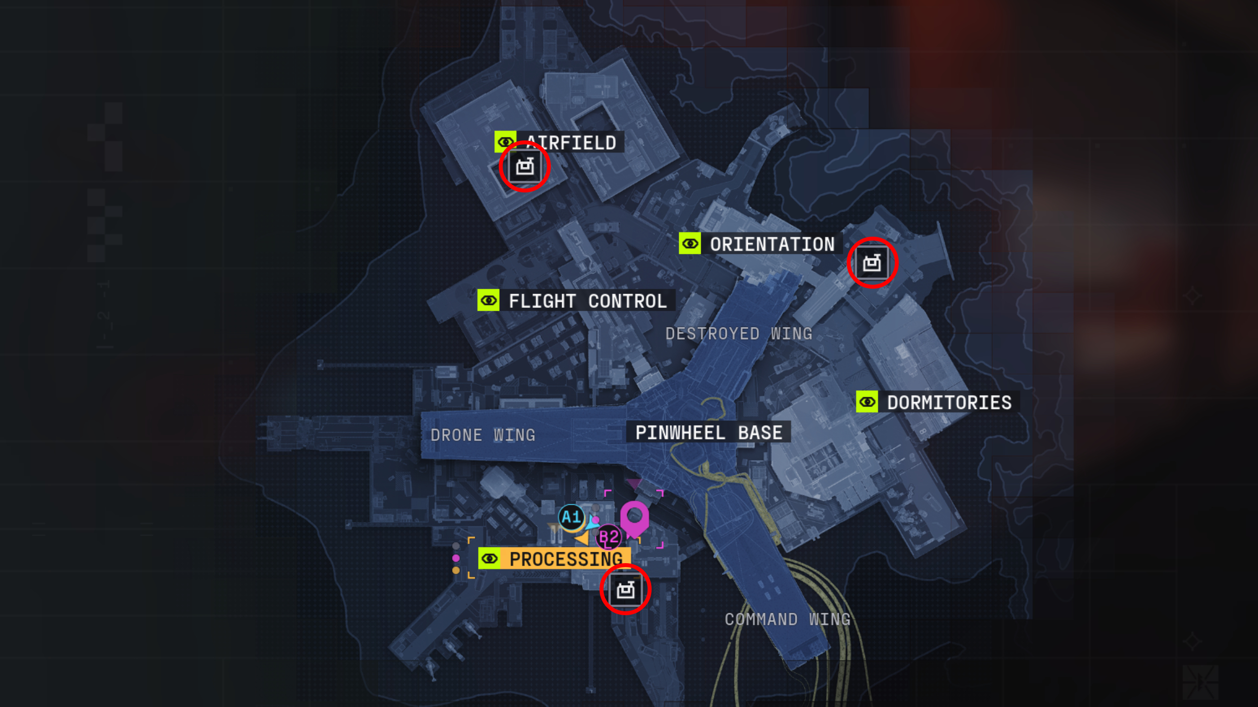 - Airfield: Inside the western hangar on the ground floor, near the hole in the ceiling