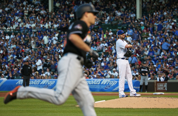 Anthony Rizzo had the big blow, a two-out, two-run double in the third inning. The rally started when a running Ozuna dropped a catchable fly ball in deep left field.