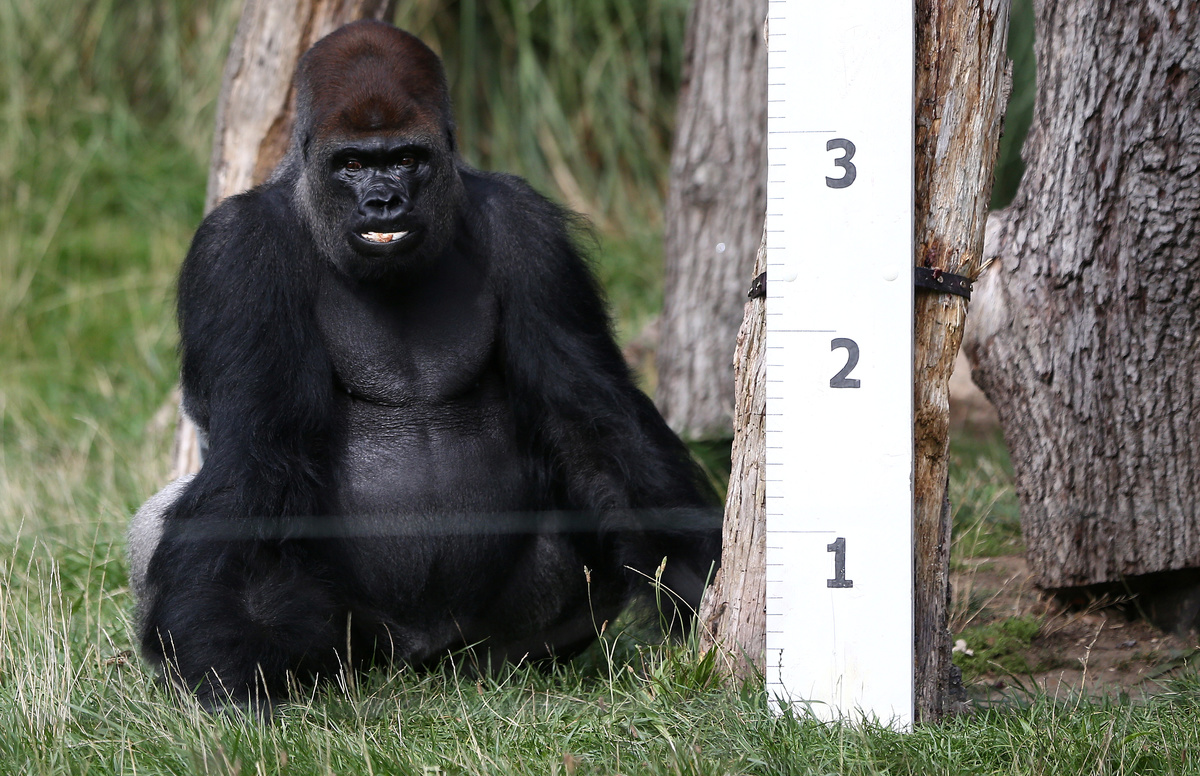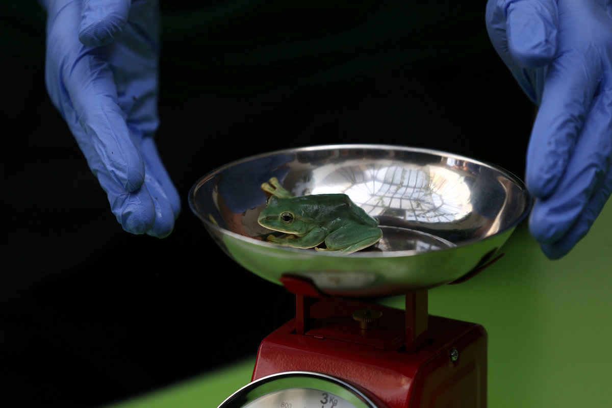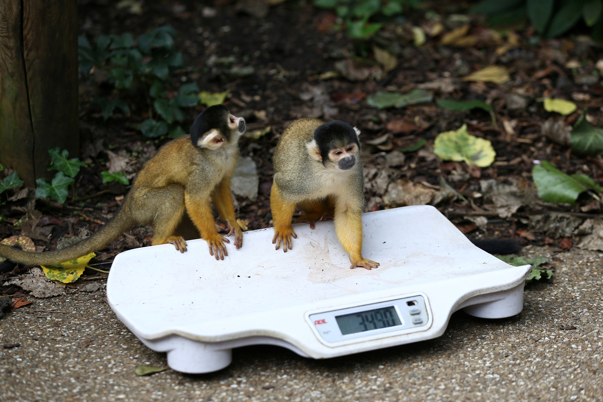 Squirrel monkeys step on scales during a photocall for the annual weigh-in at London Zoo in London, Britain August 24, 2017. REUTERS/Neil HallA worker cleans the windows of a penguin tank during a photocall for the annual weigh-in at London Zoo in London, Britain August 24, 2017. REUTERS/Neil HallLions stand by a large ruler during photo-call for the annual weigh-in at London Zoo in London, Britain August 24, 2017. REUTERS/Neil HallA spiny turtle stands on scales during a photocall for the annual weigh-in at London Zoo in London, Britain August 24, 2017. REUTERS/Neil HallGorilla sits next to a ruler during a photocall for the annual weigh-in at London Zoo in London, Britain August 24, 2017. REUTERS/Neil HallA fleas flying tree frog sits on a photographers lens during a photocall for the annual weigh-in at London Zoo in London, Britain August 24, 2017. REUTERS/Neil HallA fleas flying tree frog sits on scales during a photocall for the annual weigh-in at London Zoo in London, Britain August 24, 2017. REUTERS/Neil Hall