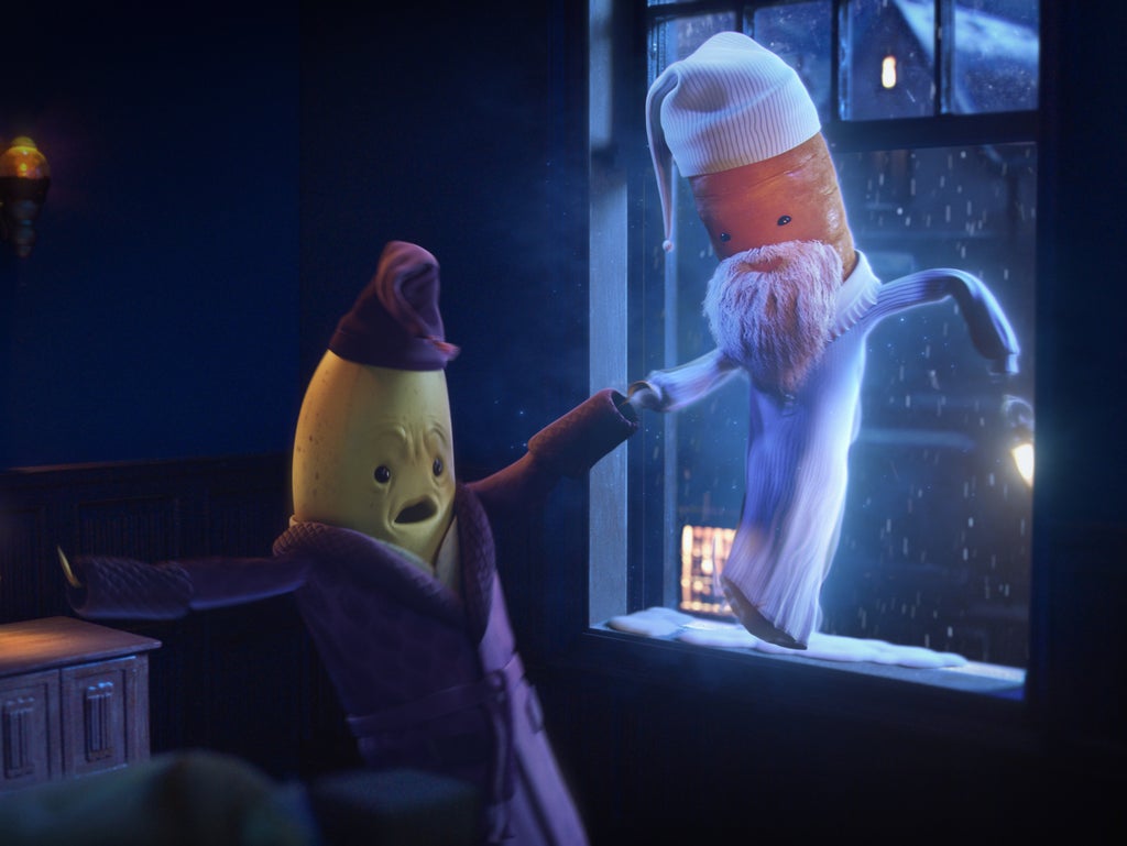In the teaser, viewers were introduced to Ebanana Scrooge as a young fruit who has his dreams crushed after Santa Claus chose a mince pie instead of him one Christmas day.