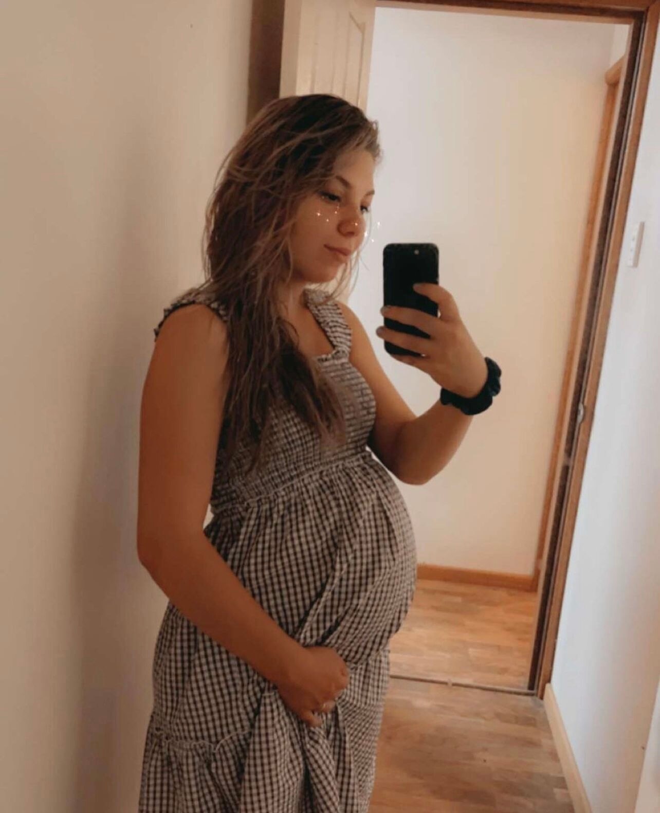 "27 weeks now! Getting closer and closer to meeting baby girl," Ms Kuhrt wrote.