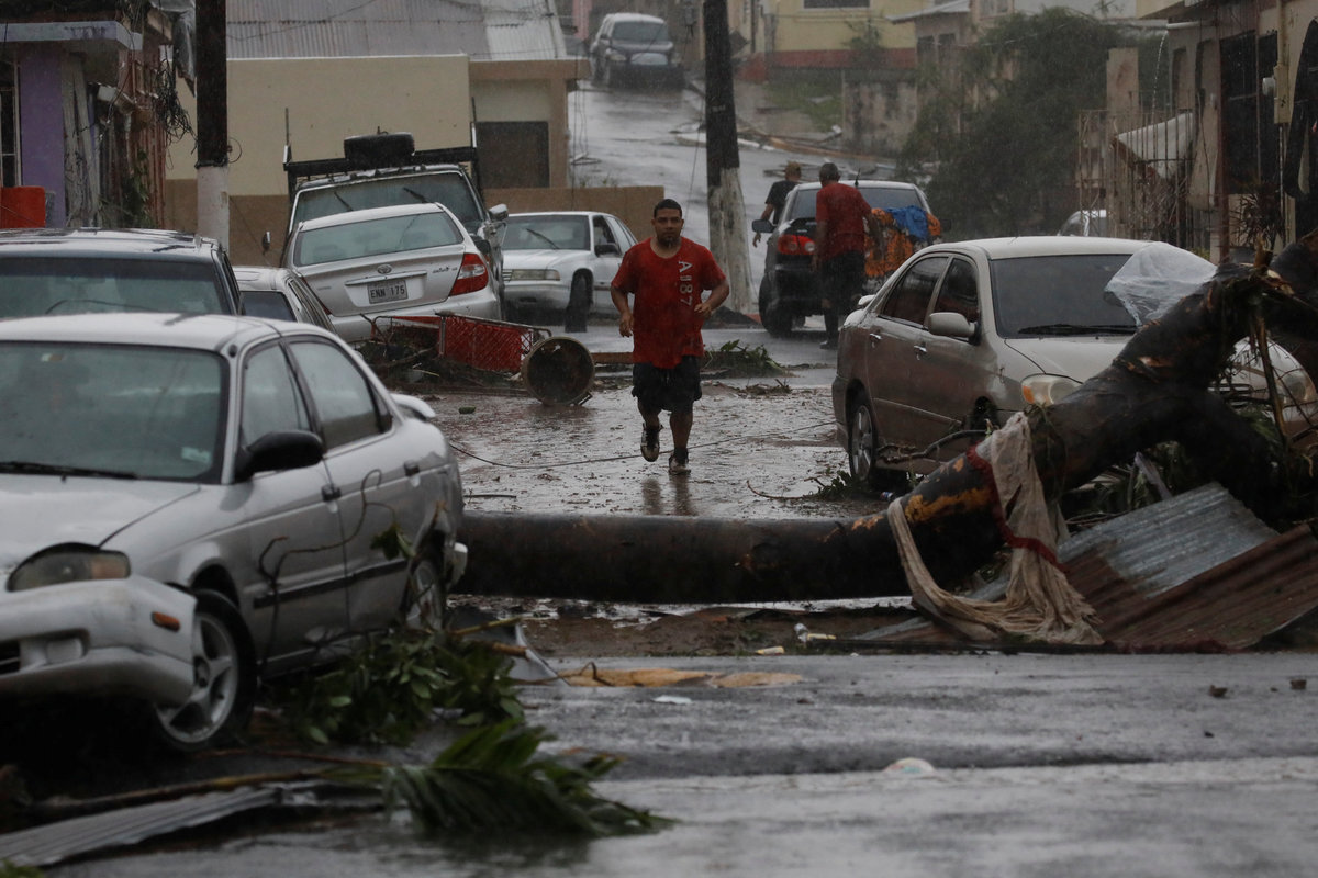 Moving on to Puerto Rico ranked a Category 4 storm, with sustained winds of up to 155 miles per hour (250 km per hour), Maria ripped roofs from buildings and turned low-lying roadways into rushing debris-laden rivers as it cut a diagonal swath across the island.