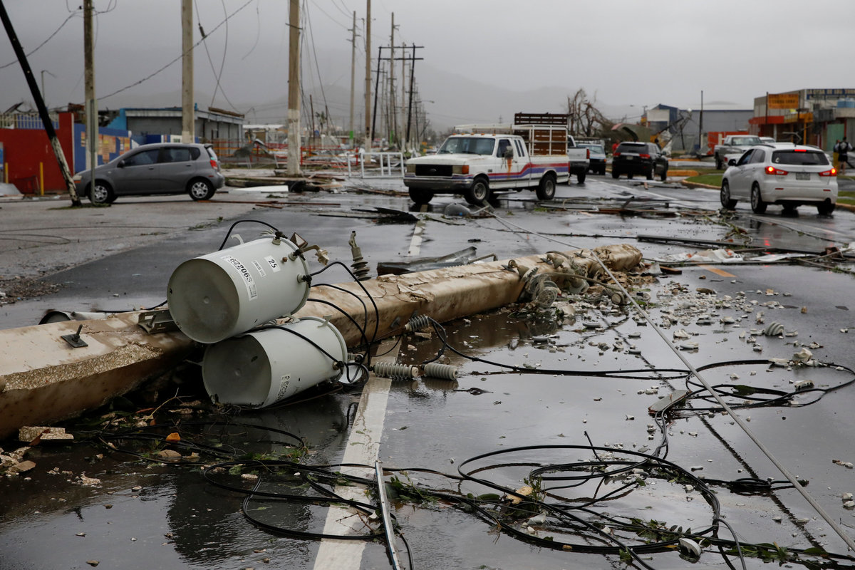 SAN JUAN, Puerto Rico (Reuters) - Hurricane Maria, the strongest storm to strike Puerto Rico in nearly 90 years, carved a path of destruction through the U.S. territory on Wednesday, causing severe flooding and plunging the island into darkness as the storm's death toll in the Caribbean rose to at least 10.