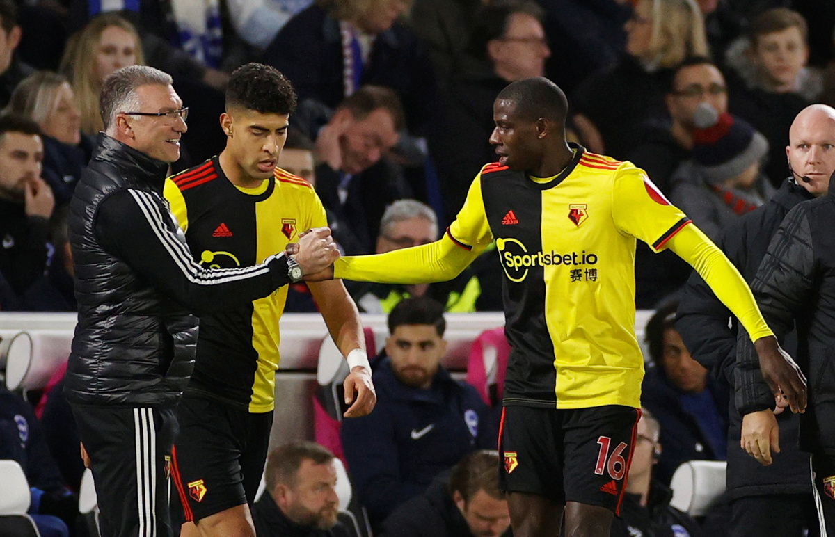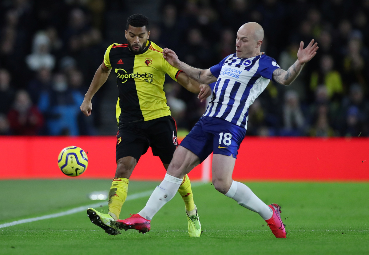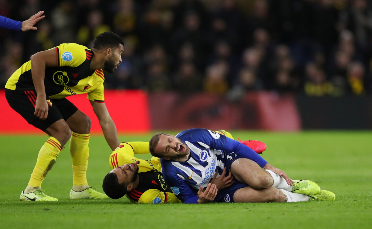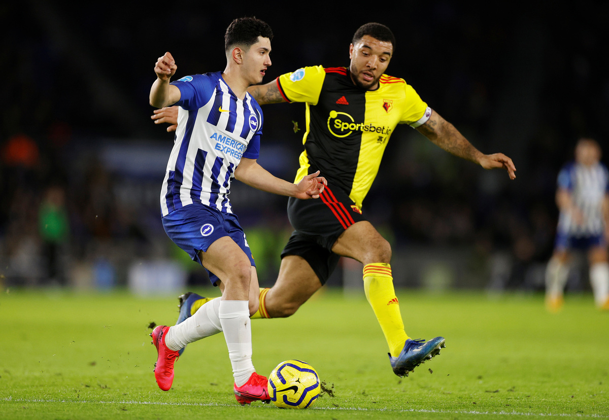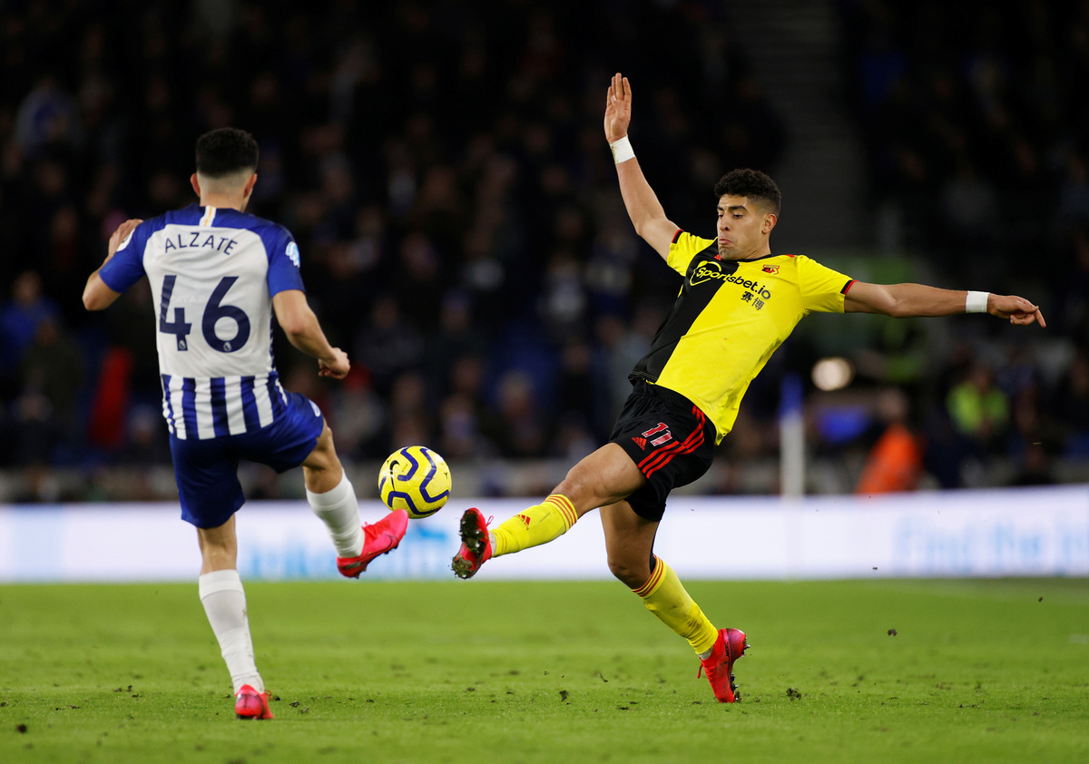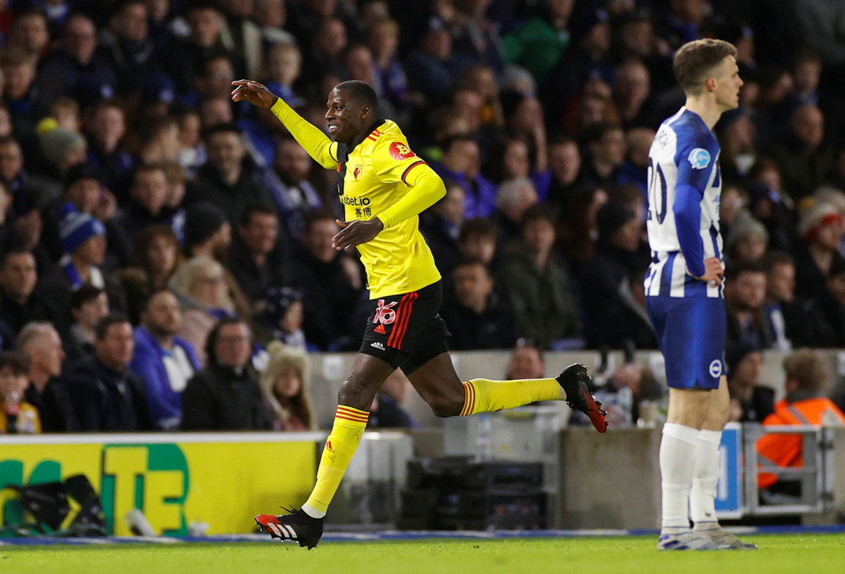 Soccer Football - Premier League - Brighton & Hove Albion v Watford - The American Express Community Stadium, Brighton, Britain - February 8, 2020 Brighton & Hove Albion's Steven Alzate in action with Watford's Troy Deeney Action Images via Reuters/John Sibley Soccer Football - Premier League - Brighton & Hove Albion v Watford - The American Express Community Stadium, Brighton, Britain - February 8, 2020 Watford's Gerard Deulofeu in action with Brighton & Hove Albion's Ezequiel Schelotto REUTERS/David Klein Soccer Football - Premier League - Brighton & Hove Albion v Watford - The American Express Community Stadium, Brighton, Britain - February 8, 2020 Watford's Abdoulaye Doucoure celebrates scoring their first goal Action Images via Reuters/John Sibley Soccer Football - Premier League - Brighton & Hove Albion v Watford - The American Express Community Stadium, Brighton, Britain - February 8, 2020 Watford's Abdoulaye Doucoure celebrates scoring their first goal with manager Nigel Pearson Action Images via Reuters/John Sibley Soccer Football - Premier League - Brighton & Hove Albion v Watford - The American Express Community Stadium, Brighton, Britain - February 8, 2020 Watford's Roberto Pereyra in action REUTERS/David Klein Soccer Football - Premier League - Brighton & Hove Albion v Watford - The American Express Community Stadium, Brighton, Britain - February 8, 2020 Brighton & Hove Albion's Glenn Murray reacts after sustaining an injury with Watford's Etienne Capoue REUTERS/David Klein Soccer Football - Premier League - Brighton & Hove Albion v Watford - The American Express Community Stadium, Brighton, Britain - February 8, 2020 Watford's Abdoulaye Doucoure scores their first goal REUTERS/David Klein Soccer Football - Premier League - Brighton & Hove Albion v Watford - The American Express Community Stadium, Brighton, Britain - February 8, 2020 Watford's Adrian Mariappa in action with Brighton & Hove Albion's Aaron Mooy REUTERS/David Klein