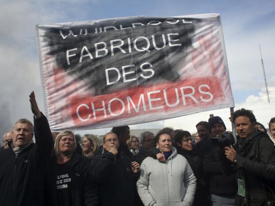 But while Mr Macron was meeting a delegation of unionists in the city centre, Ms Le Pen made a surprise visit to the Whirlpool workers on the picket line, opposing closure of the plant next year by its US owners.