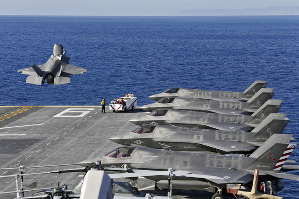 The most expensive item on the Marine Corps list is $877 million for six F-35 fighter jets. The jet is being built for all the services.