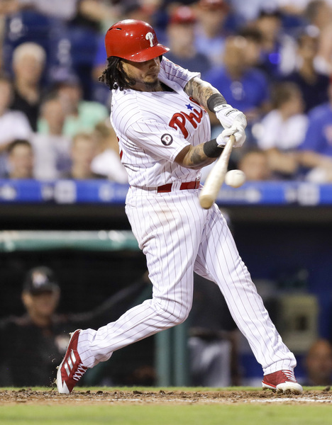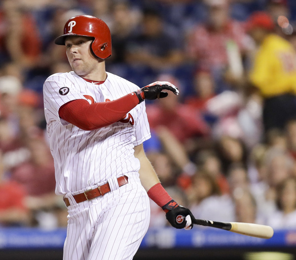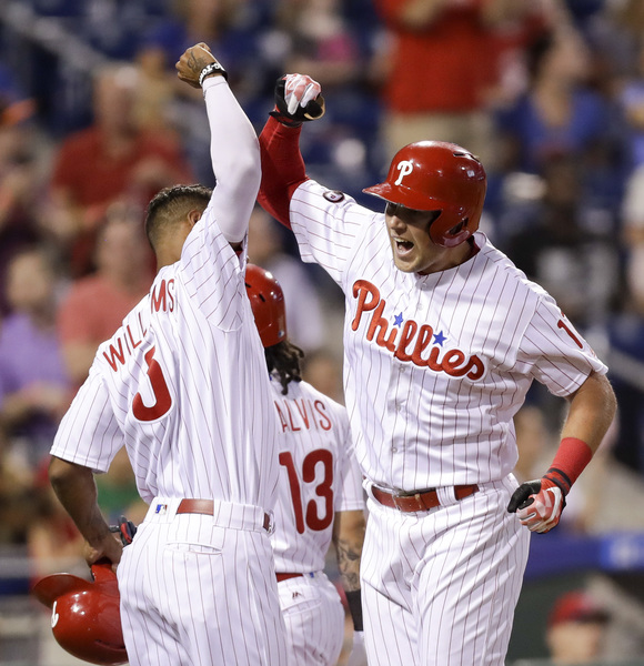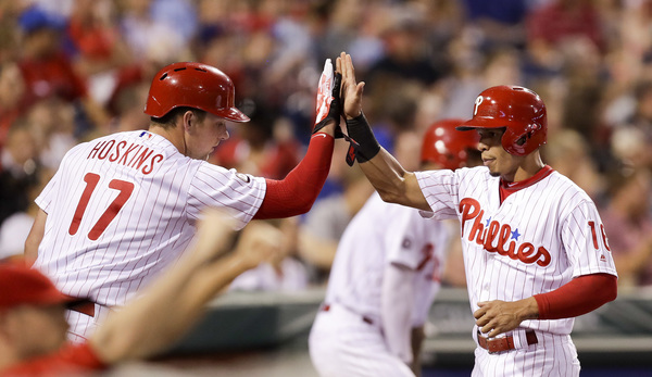 The big blow was a three-run home run from Rhys Hoskins, Philadelphia's rookie left fielder who has seven home runs in his first 14 games. Hoskins fell behind 0-2, but worked the count full until, on the eighth pitch of the at-bat, Nicolino left a fastball over the heart of the plate. Hoskins planted it in the upper deck in left field, a projected 445 feet from home.