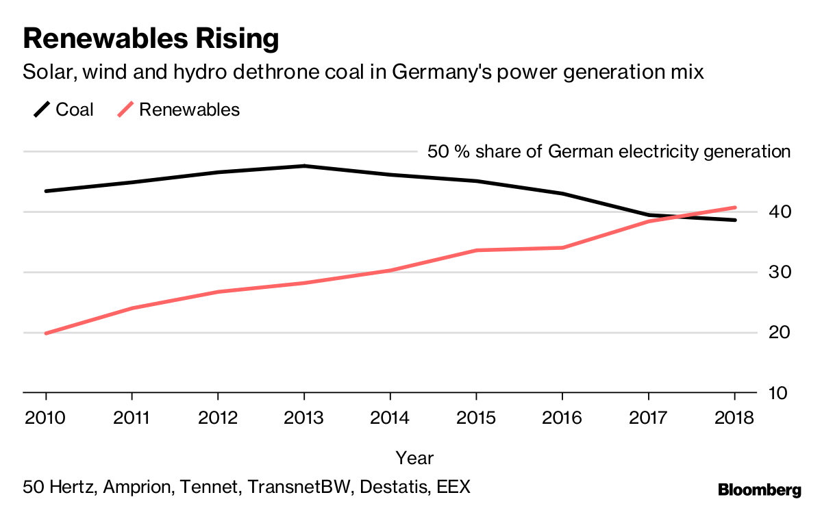 Echoing the U.S. trend where renewables are beating coal-fired power production despite President Donald Trump’s support for the dirtiest fossil fuel, markets are moving faster than lawmakers when it comes to closing Germany’s coal plants. And around the world, institutional investors are halting lending for new coal-power stations and mines too.