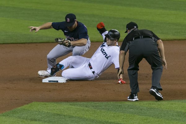 MIAMI _ Miami Marlins hopeful ace Sandy Alcantara worked through four strong innings and got himself out of a jam in the fifth before the Boston Red Sox cracked him in the sixth. Jackie Bradley Jr.'s two-out line drive to left field broke open a scoreless game.