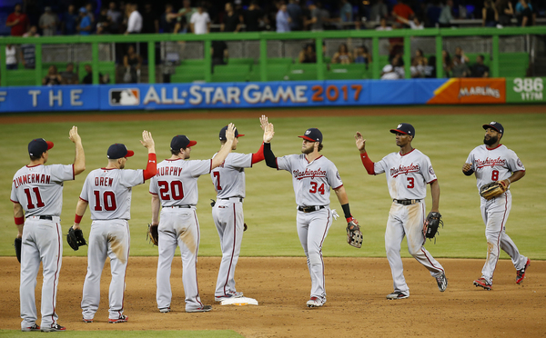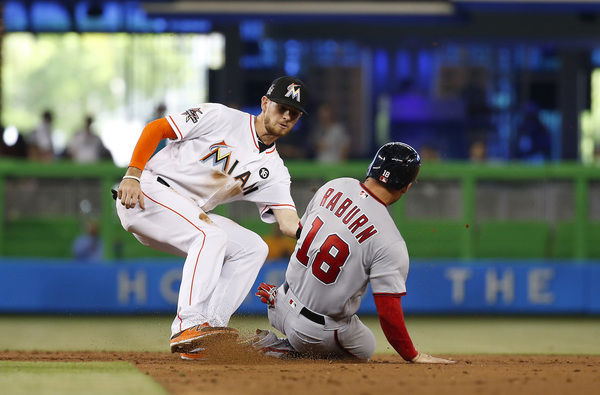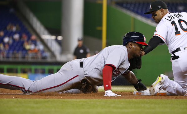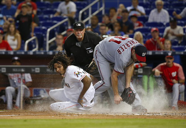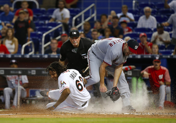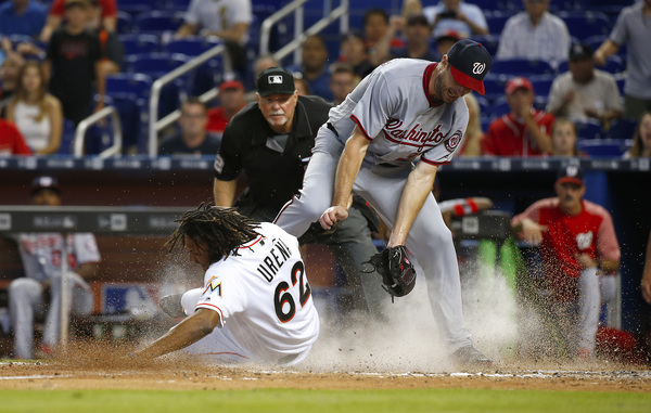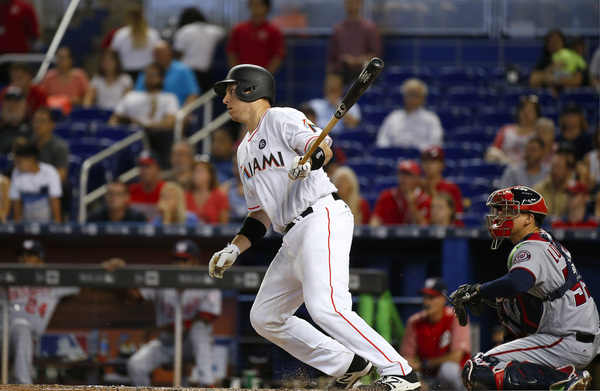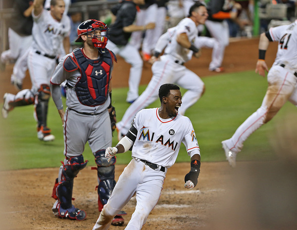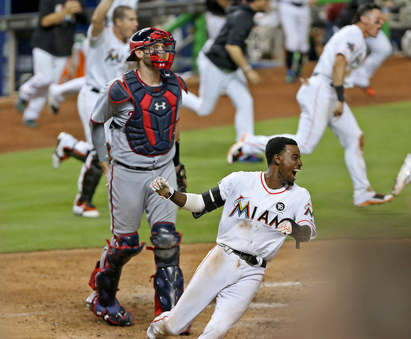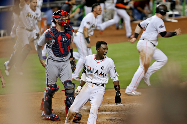 With a ninth-inning line drive to left-center field, Ozuna lifted the Miami Marlins to an 8-7, walk-off win over the Nationals at Marlins Park. Dee Gordon, who started the two-out rally with a walk, scored from third.