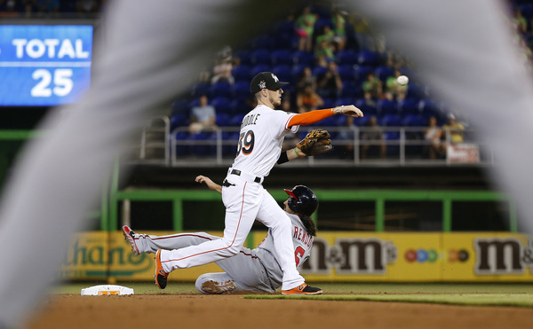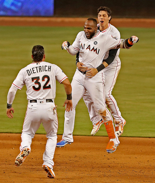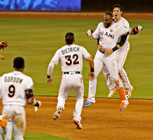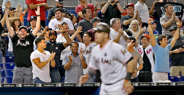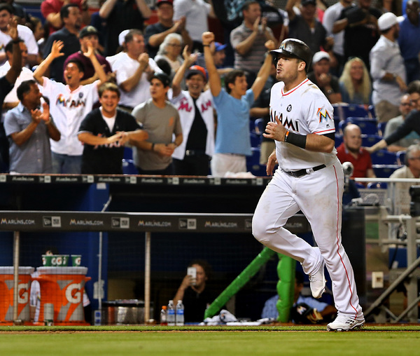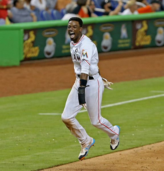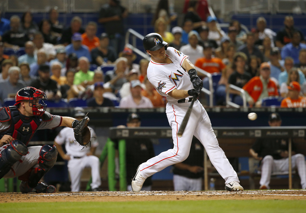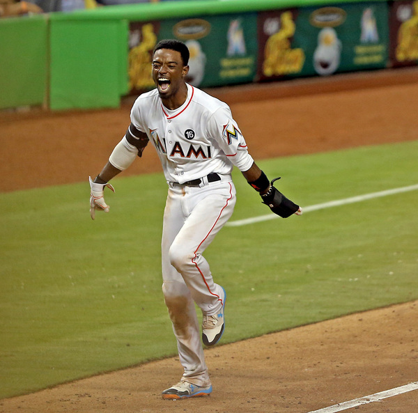 The game-winning hit gave the Marlins their first lead of the day. They had tied previously the game twice, with six innings in the third (four on Justin Bour's grand slam) and one in the seventh (on Giancarlo Stanton's solo shot).