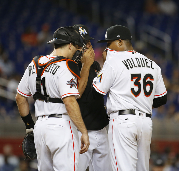 Down six in the bottom of the third, the Marlins plated a half-dozen runs to tie the game. The final four scored with two outs in a rally sparked by Stanton's infield single. After Christian Yelich and Marcell Ozuna walked to load the bases, Bour walloped a grand slam into the Miami bullpen in right field.