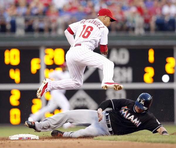 He had the Phillies swinging themselves into corkscrews with a blend of 99-mph fastballs and a wicked curve. Fernandez had eight strikeouts in the first three innings.