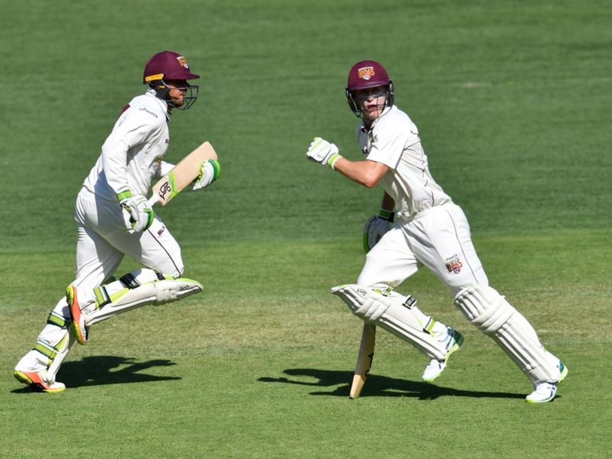 Marnus Labuschagne has marched Queensland to 2-148 at lunch on day four of their Sheffield Shield clash with Tasmania in Hobart, where the visitors require a further 162 runs to win.