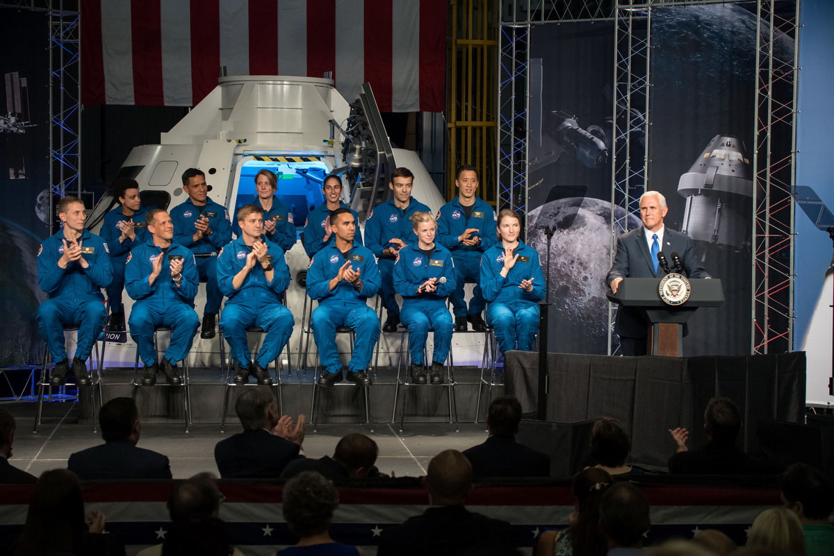 U.S. Vice President Mike Pence welcomed the five women and seven men, aged 28 to 42, during their introduction at the U.S. National Aeronautics and Space Administration's Johnson Space Center in Houston.