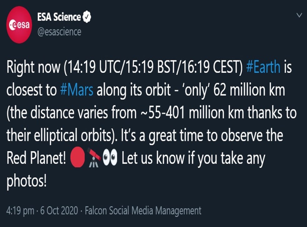 October’s opposition will be extra special due to the orbits of Earth and Mars lining up to be at their closest to each other.
