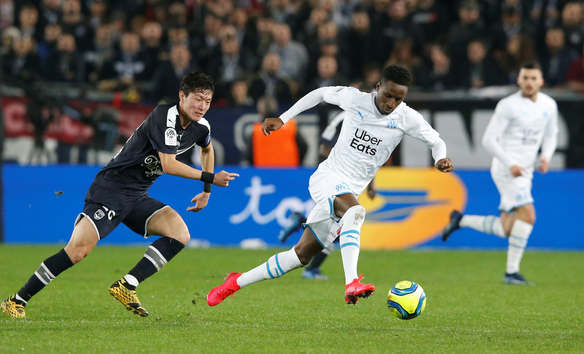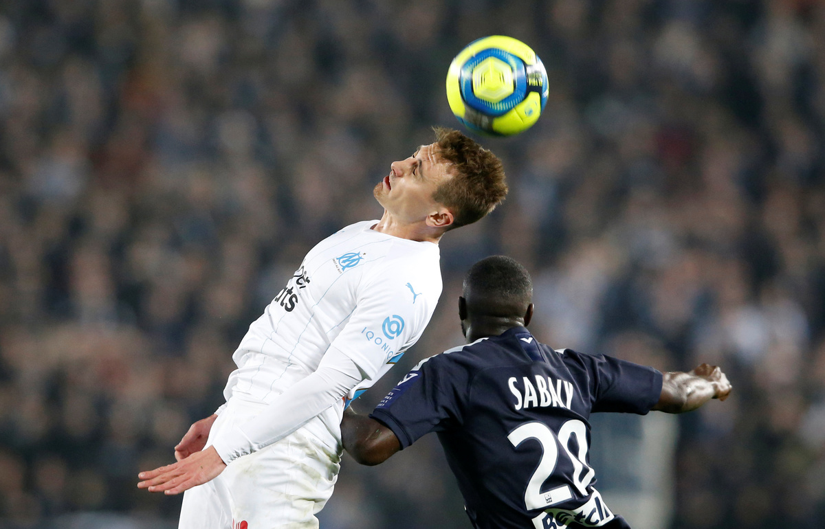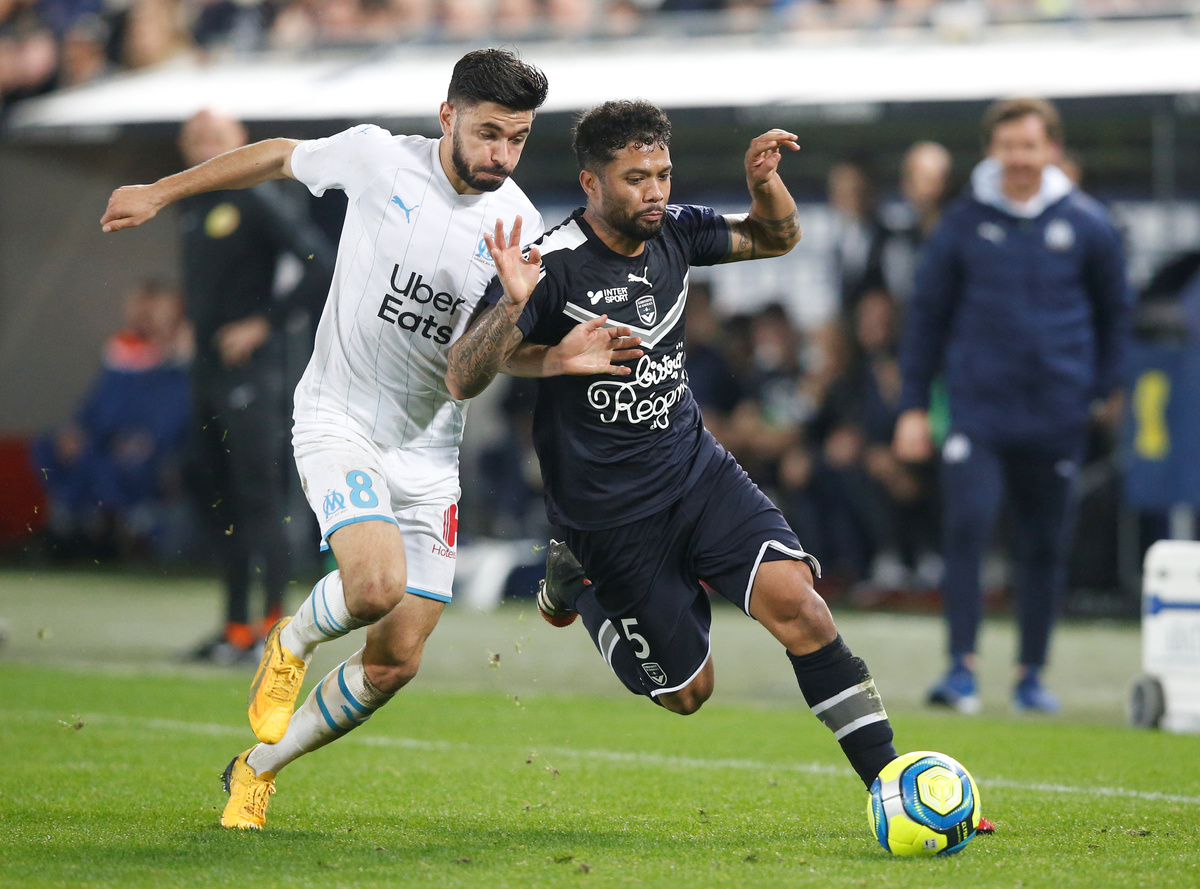 Soccer Football - Ligue 1 - Bordeaux v Olympique de Marseille - Matmut Atlantique, Bordeaux, France - February 2, 2020 Olympique de Marseille's Morgan Sanson in action with Bordeaux's Otavio REUTERS/Regis DuvignauSoccer Football - Ligue 1 - Bordeaux v Olympique de Marseille - Matmut Atlantique, Bordeaux, France - February 2, 2020 Olympique de Marseille's Bouna Sarr in action REUTERS/Regis Duvignau