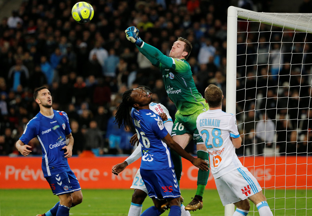 Soccer Football - Ligue 1 - Olympique de Marseille vs RC Strasbourg - Orange Velodrome, Marseille, France - January 16, 2018 Strasbourg’s Alexandre Oukidja in action REUTERS/Jean-Paul Pelissier