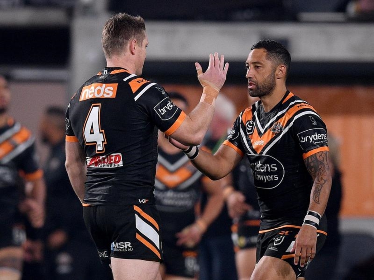 The five-eighth had looked dangerous on the left before his injury, helping David Nofoaluma put Tommy Talau over for the Tigers' first with a cut-out ball.