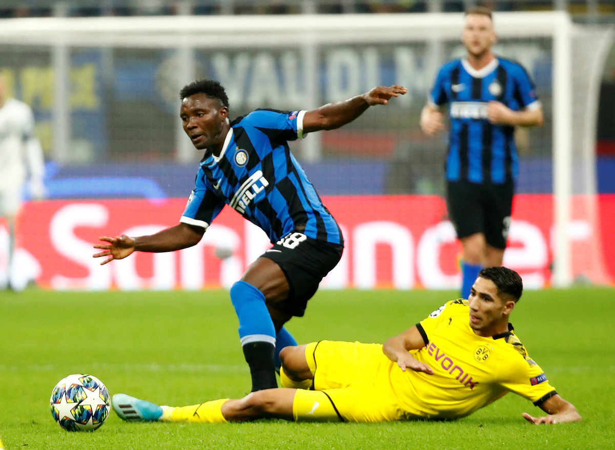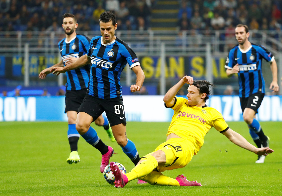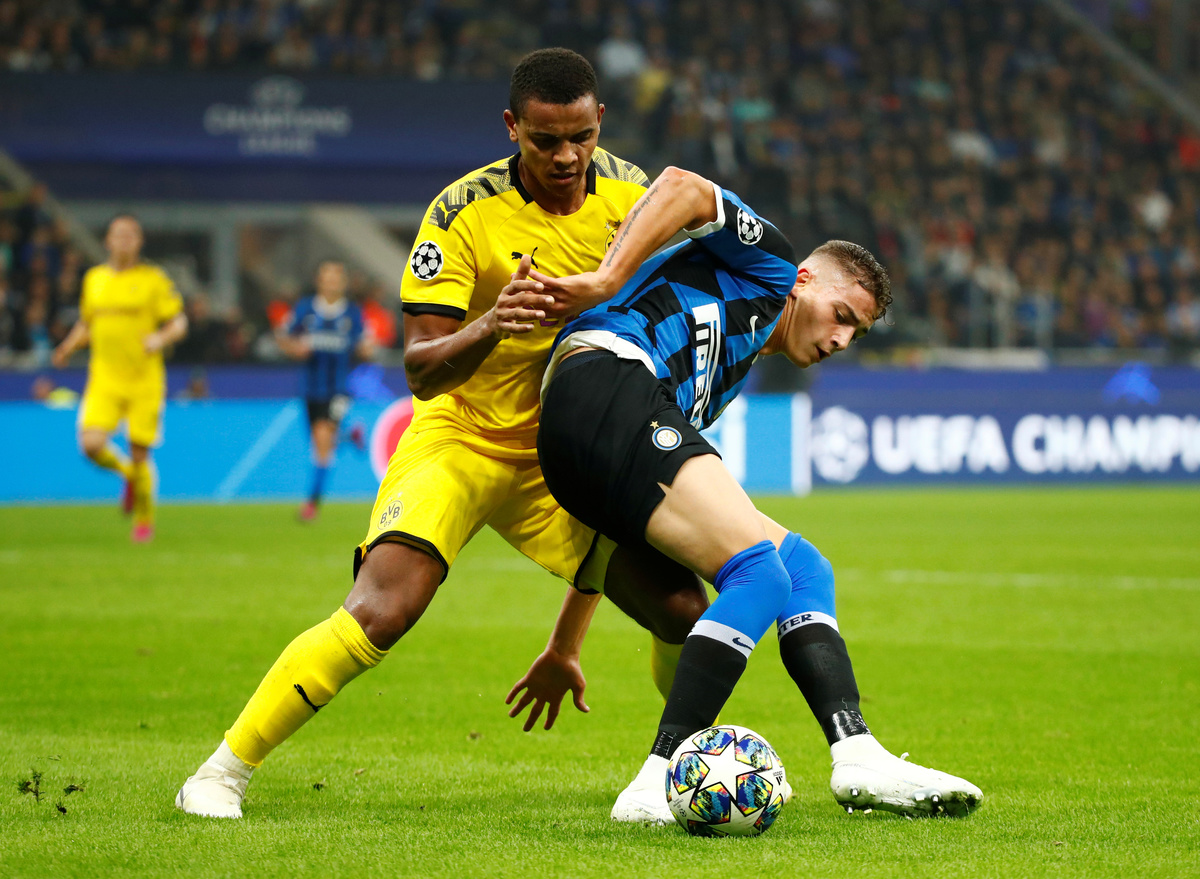 MILAN (Reuters) - Forward Lautaro Martinez scored one goal and missed a second-half penalty as a lacklustre Inter Milan scraped their first win in their Champions League group by beating Borussia Dortmund 2-0 on Wednesday.